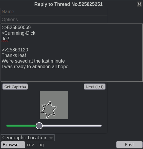 >>525860069>Cumming-DickJej!>>25863120Thanks leafWe're saved at the last minuteI was ready to abandon all hope