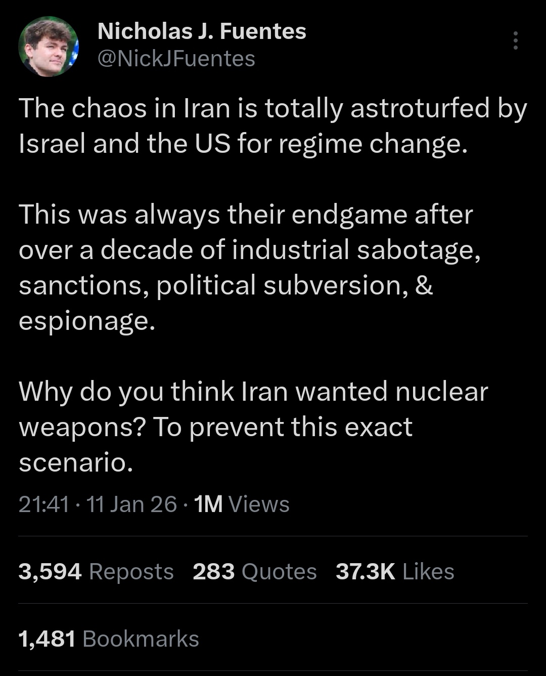 >>525826430Nobody gives a shit about Iran except jews, Nick
