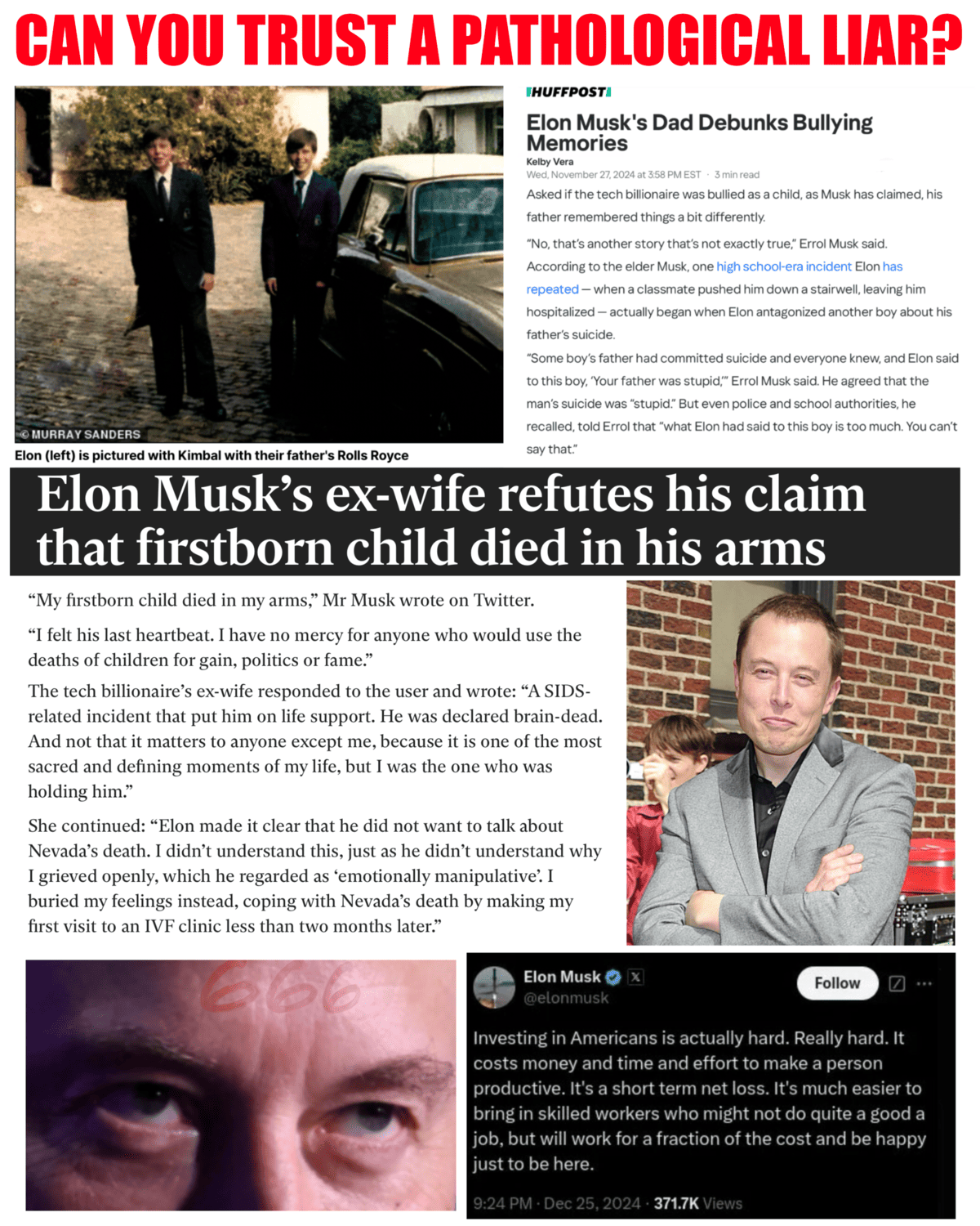 >>525828253Felon Busk is the one who destroyed his son's life and put him on hormones. Imagine your parents turning you into a tranny. People don't hate the Tesla subhuman enough.
