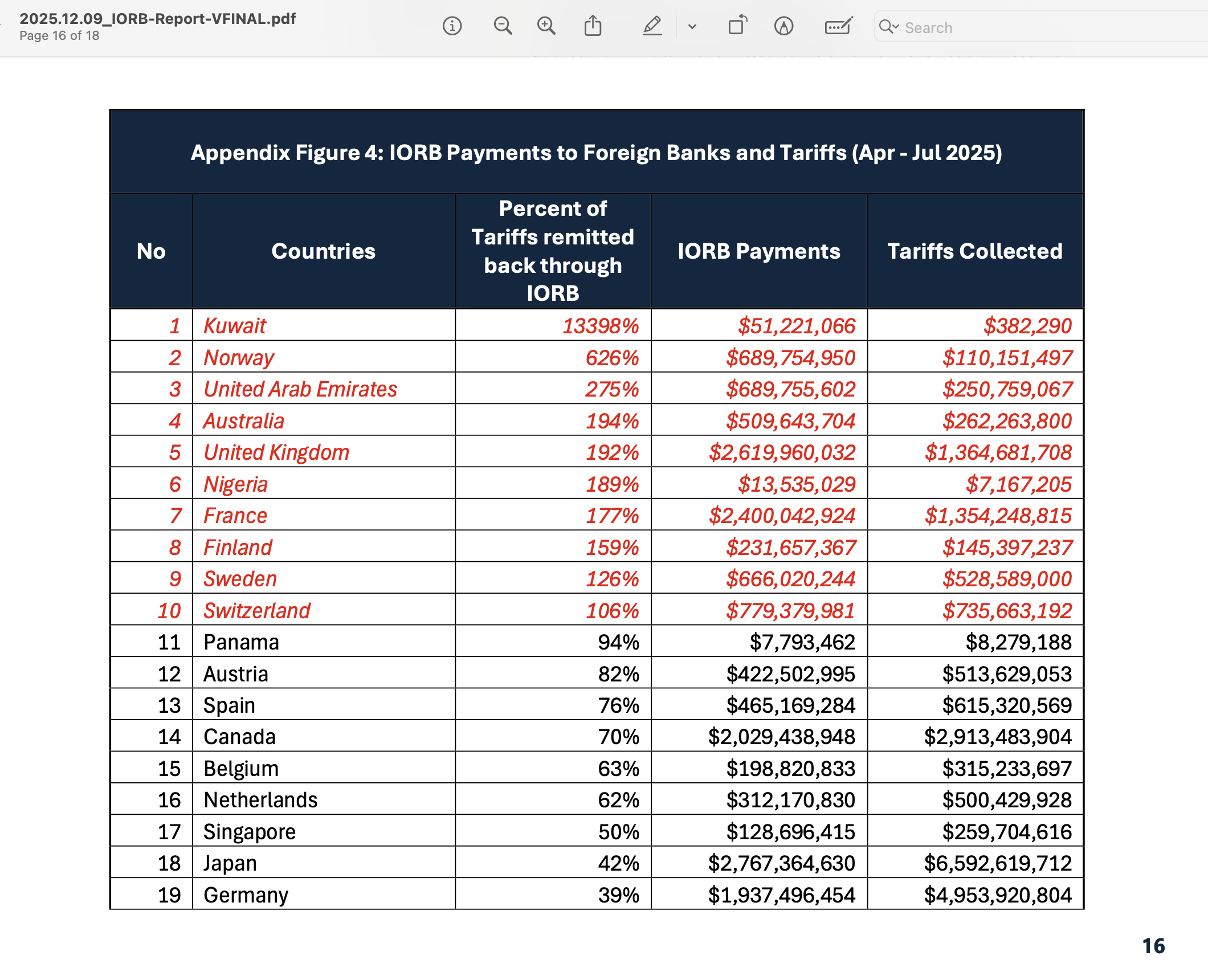 >other countries should pay tariffs equal to what we pay