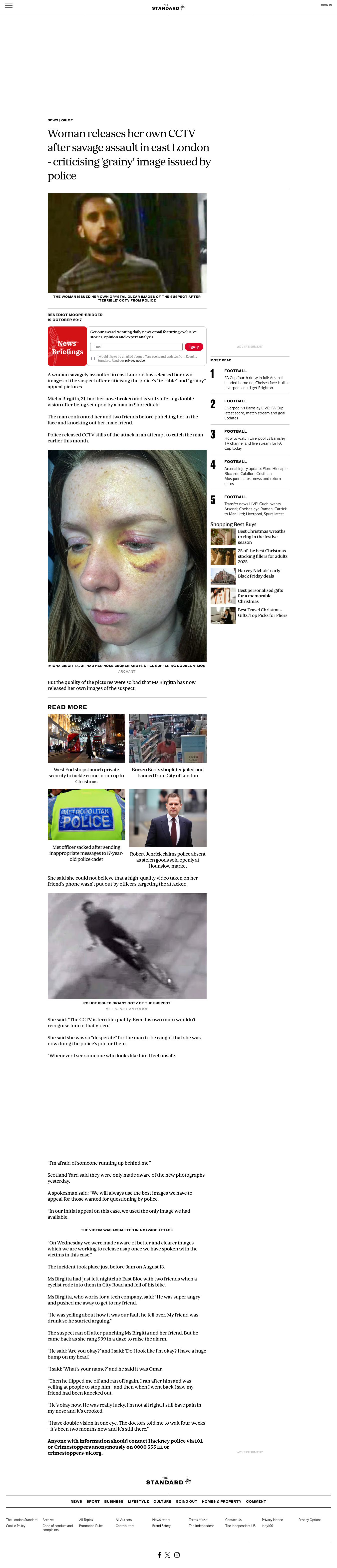 >>525836220Image search that:London Evening StandardWoman releases her own CCTV after savage assault in east ...Extra.ieWoman searching for cyclist who left her with broken nose in ...HamHighCity Road attack: Islington man charged over assault that ...The SunWoman pic of thug who beat her up on night out after cops ...Daily MailTraumatised London woman releases images 'of her attacker