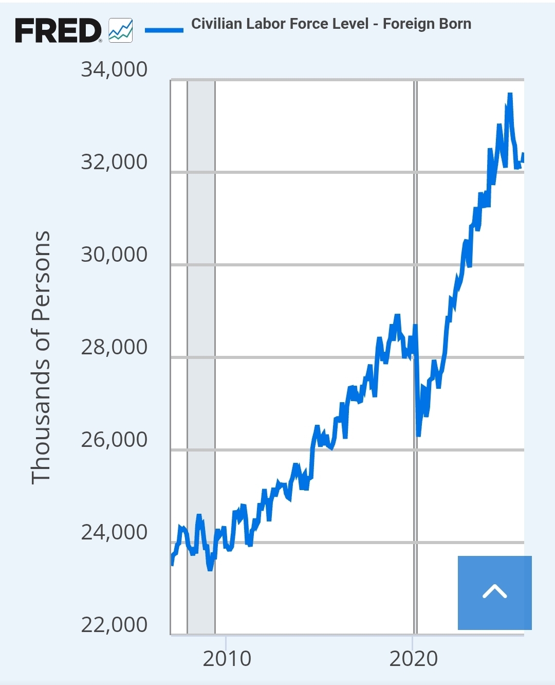 >525842304>>525842219>ahhh this graph must be photoshopped I can see from the pixels Since you're retarded, this is from the St. Louis Federal Reserve Bank and they track a multitude of facts about labor and rhe economy in general. You can look it up yourself. They've been tracking the foreign born part of the civilian labor force since mid 2000s and it only ever goes down when Trump is in office.But whatevs, sure, just keep lying to yourself and everybody else. This is the only thing left in your playbook now that the USAID and Somali money has dried up.