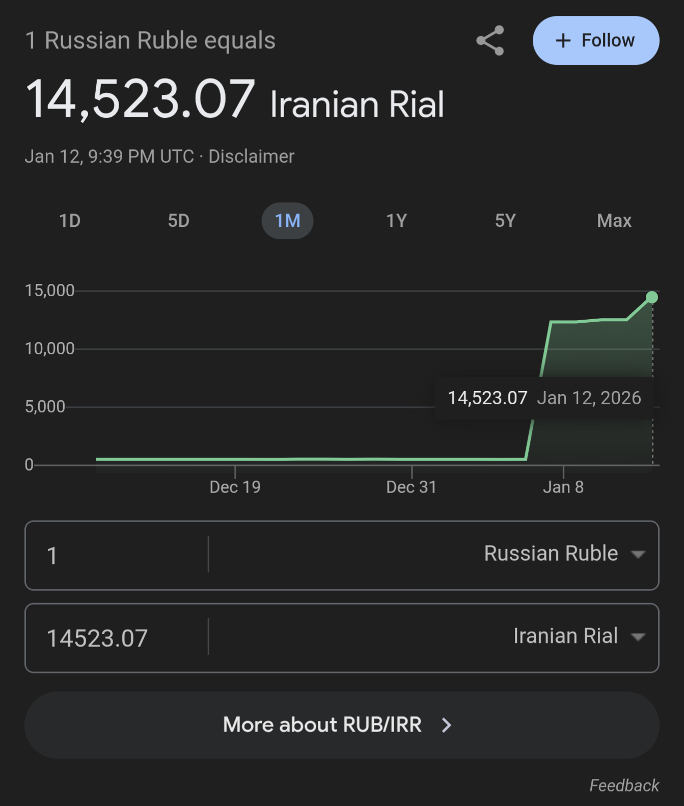 >>525841446it's the same thing with the USD/ruble graphit is meaningless because you can't exchange these thingsif you think otherwise, feel free to take some USD into iran and be treated like a king due to this "inflation"