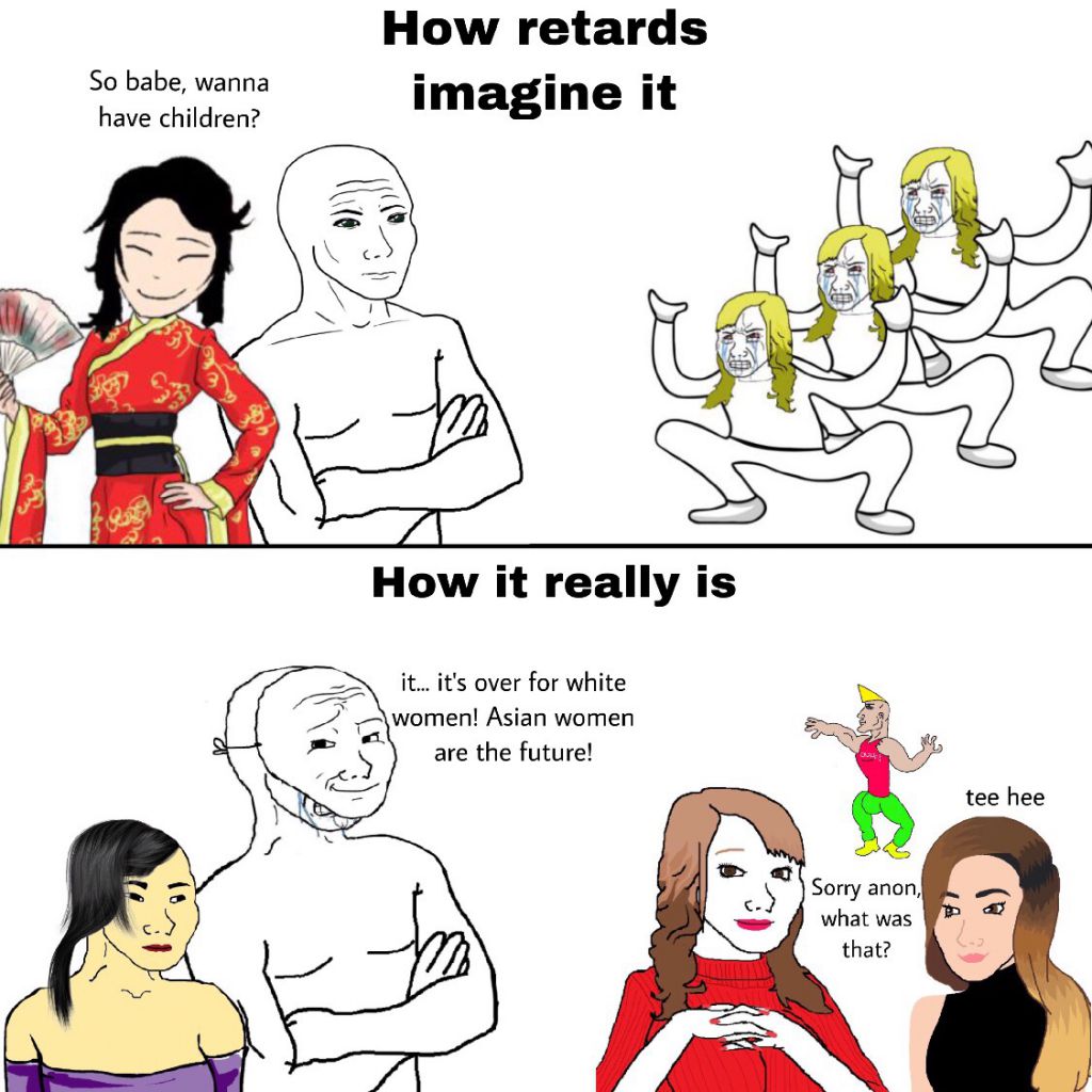 >>525849888i highly doubt you even own a passport. chuddy. the average asiatic women is incredibly awkward/hideous. you chuds are hyper-fixated on the top 0.0000001% of cosmetically altered/sh00ped models, celebrities, porn actresses, etc. irl, even the typical african woman is more attractive.
