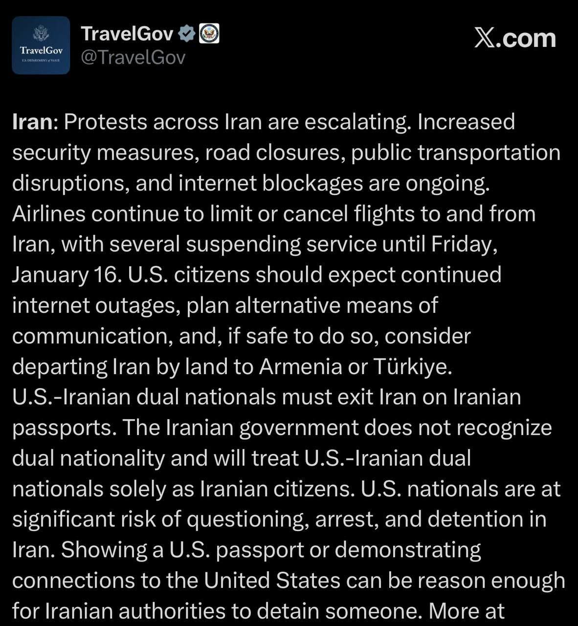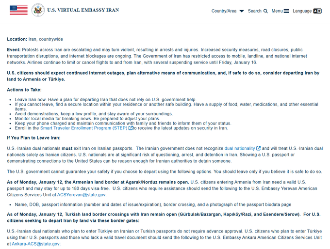 new alert from the US for all US citizens to leave ASAP or hide/shelter in place