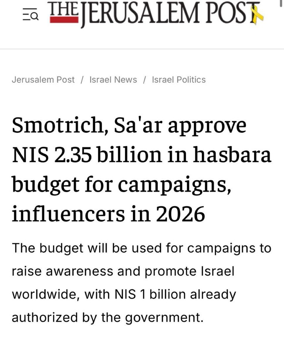 >WSJ on Israel spending “$250,000 a month” to buy support from MAGA influencers, with Netanyahu personally courting them>Additional context from the Jerusalem Post: