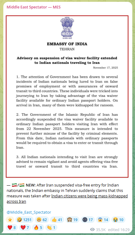 >>525848297>People posted pictures of arrested immigrants even, and there were Indians and Afghans among them.source please. Cause being a spy for Israel is a vile accusation to hurl without any source. And no, Al Estiklal quoting a random twitter account doesn't count. And you seem to be avoiding my repeated query >>The Indian Human Rights Observatory confirmed that Iran had expelled Indian diplomats from its territory following the arrest of 19 Indian nationals accused of spying for Israeli Intelligence.>What sign of "The Indian Human Rights Observatory" (lol just like SOHR right?) can you find? The article you cited at https://www.alestiklal.net/en/article/most-of-them-are-indians-inside-mossad-s-spy-network-in-iran-story-unveiled is just making stuff up.