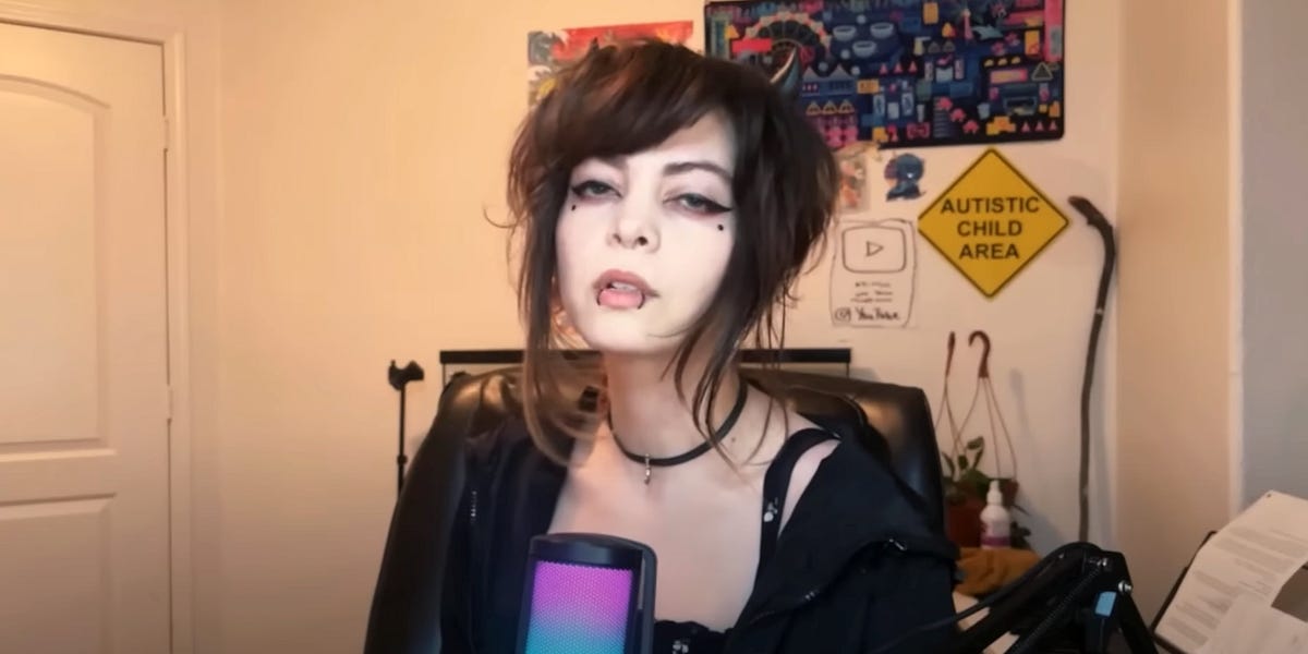 i watched a lot of her livestreams(i like yapping in the background) and she is just a giant red flag, shes a hypochondriac, has a shit ton of exes(its always their fault why they broke up) uses mushrooms,has a snake,cant cook(like holy shit check out her cooking stream its hilarious)shes got a schizo stalking her now as well and shes lazy af she gets around 300-1000 vievers but only streams like once a week