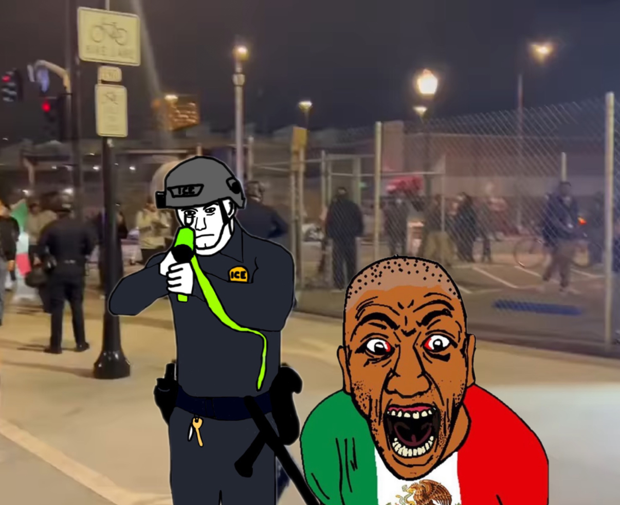 The BVLL is correct. He has a very good chance that if he rizzed up them ICE agents wives, he'd be able to fuck them. He's also correct that without the guns and badge he's put every one of them to sleep. Whites meanwhile rolled over and showed their soft pink bellies when authorities stopped on "muh freedoms" during covid.