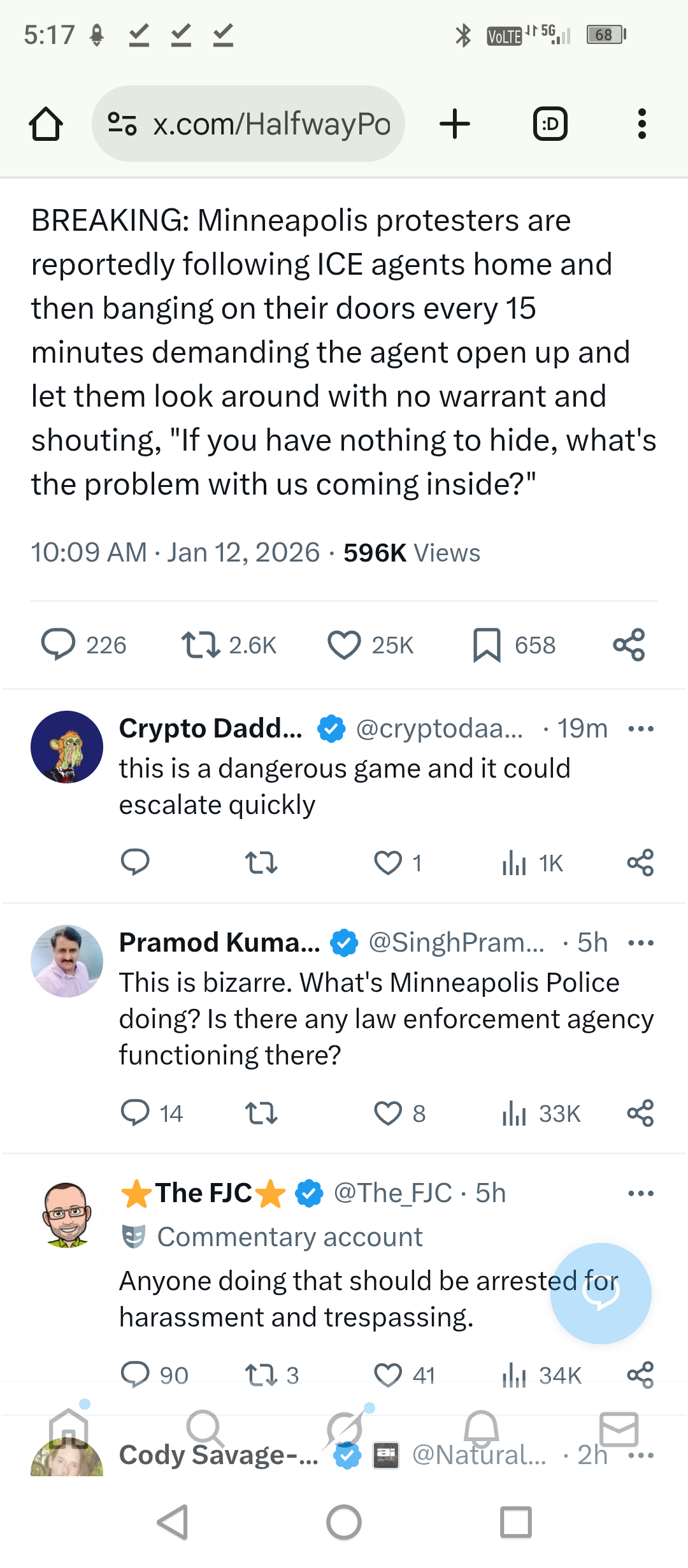 >>525852225knocking on someones door isn't a home invasion, cletus.