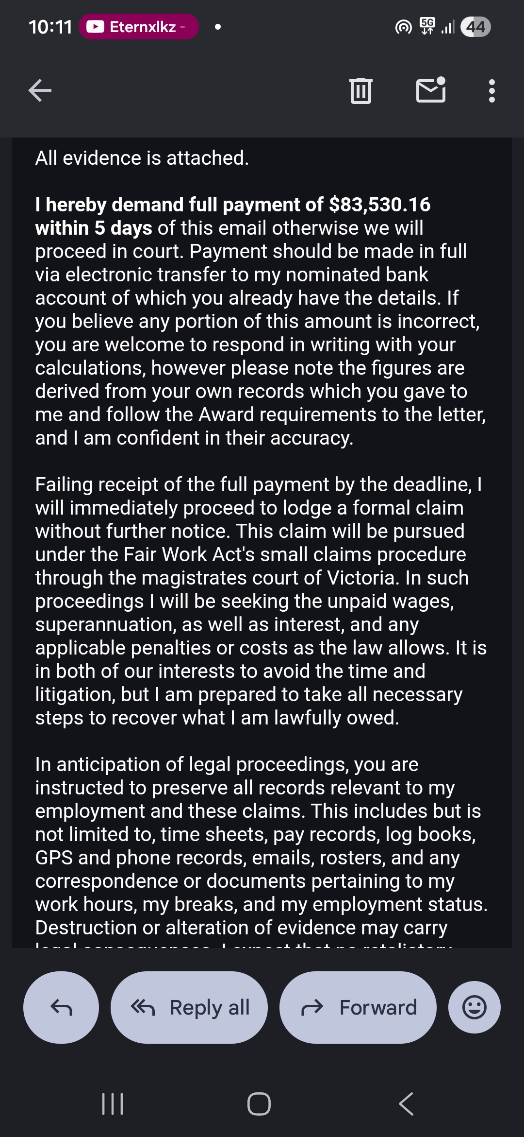 My final appeal to reason before I literally rape a corpse. That is how easy this case is going to be. I am only giving them a chance because it looks good for the court. They will be lucky if they dont get shut down once I prove they forced me to work on 6 different occasions while medically incapacitated. It felt so fucking good to send this.