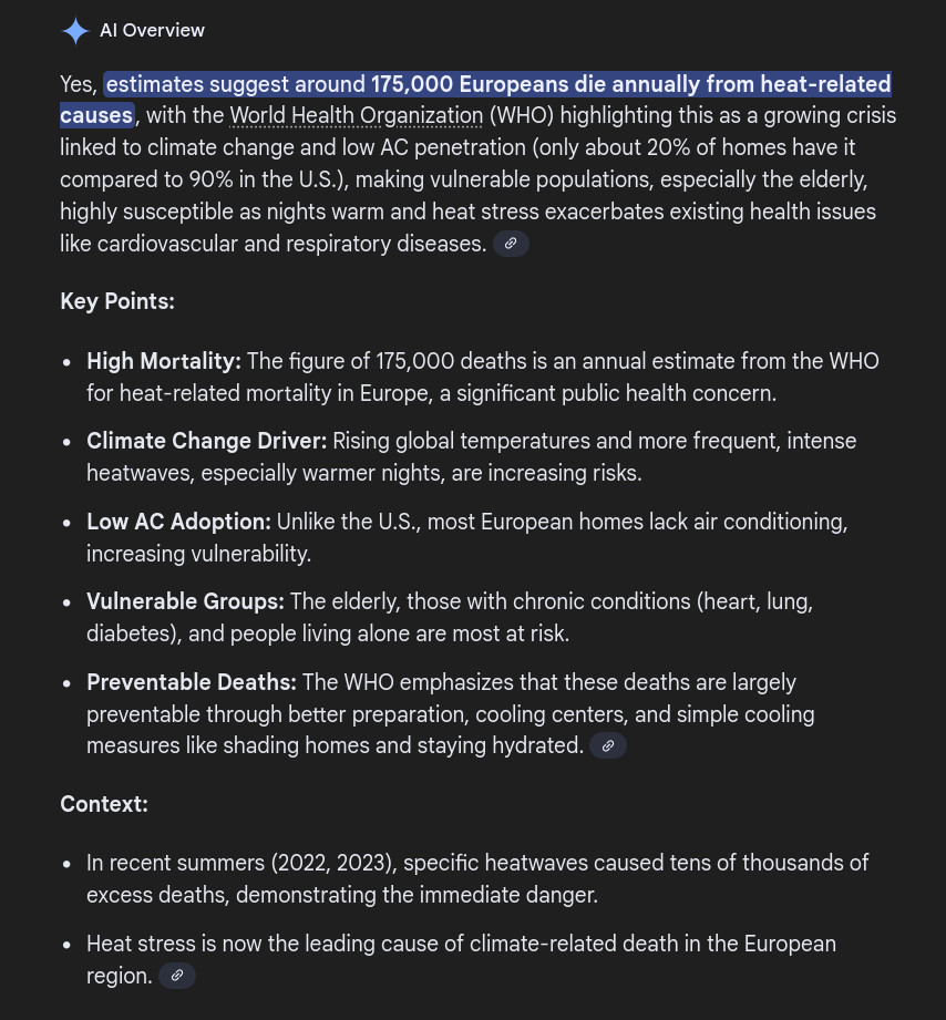 >>525857655>Ameritard still keep posting AI slop data>its le ACs le goyNobody dies from heat related deaths here other than old people who decide to go run in the park during the biggest heatwaves of the summer. No wonder you Americans are so fucked up in the head. You eat up the AI slop right up.
