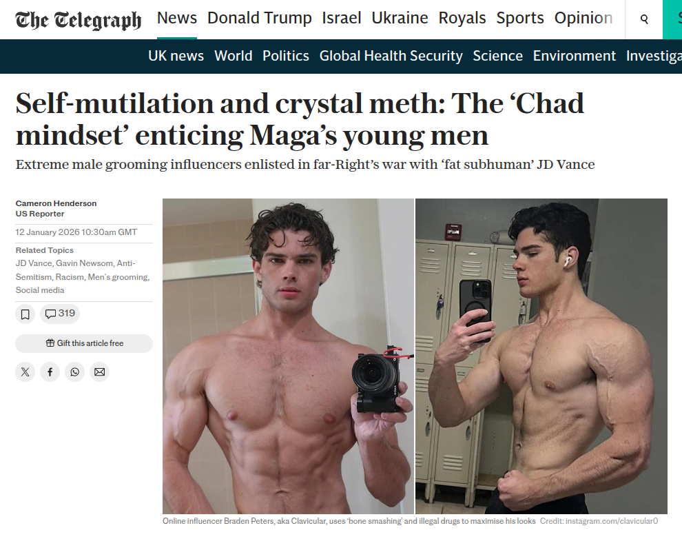 This dude might be the most epic troll I've ever seen. He's attractive enough that Boomers and retards like Cameron Henderson and the kike who edits The Telegraph will believe anything he says and even repost his obviously photoshopped pictures creating a never-ending vortex of halo effect. They have the critical thinking skills of a drunk slut and he's forever exposing them. Kneel.