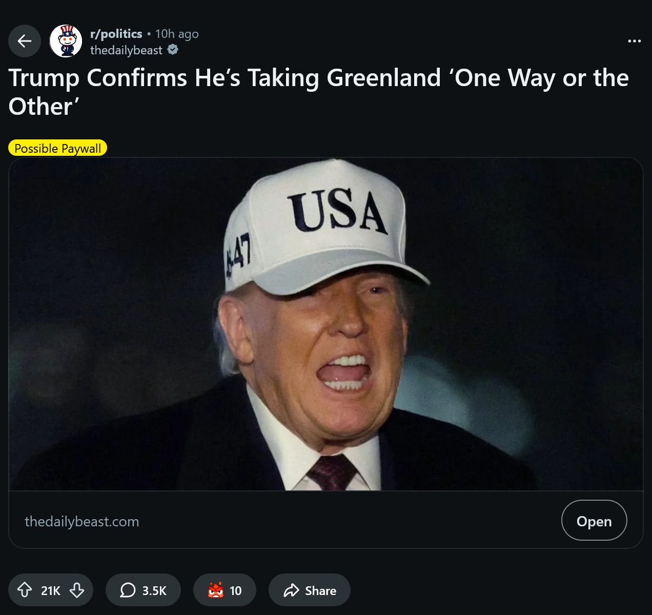 This reddit thread is full of people saying Trump taking Greenland would start World War 3. I don't think Europe has enough nukes to do that. The UK's nukes are tied directly into the US system. So, basically, we're only talking about France's nukes. https://www.reddit.com/r/politics/comments/1qaw1gf/trump_confirms_hes_taking_greenland_one_way_or/
