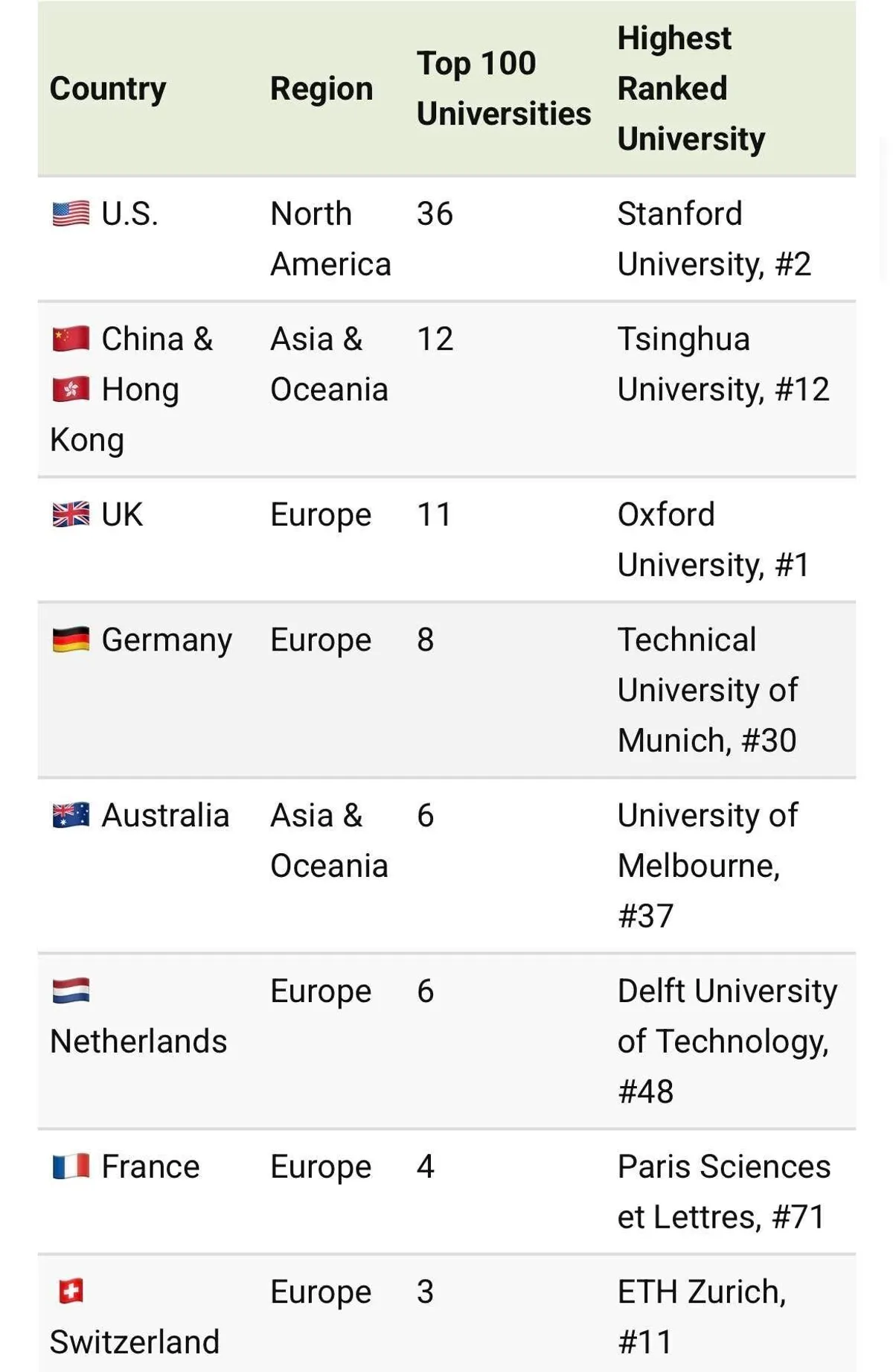 What is this list even based on? There are definitely 100 universities that matter in some way in the United States but not 100 Chinese ones. I doubt there are 100 Chinese universities that matter in China. Nobody cares unless you go to Tsinghua over there. And if it’s globally, there are neither 100 Chinese not 100 American universities that matter. Stupid list.