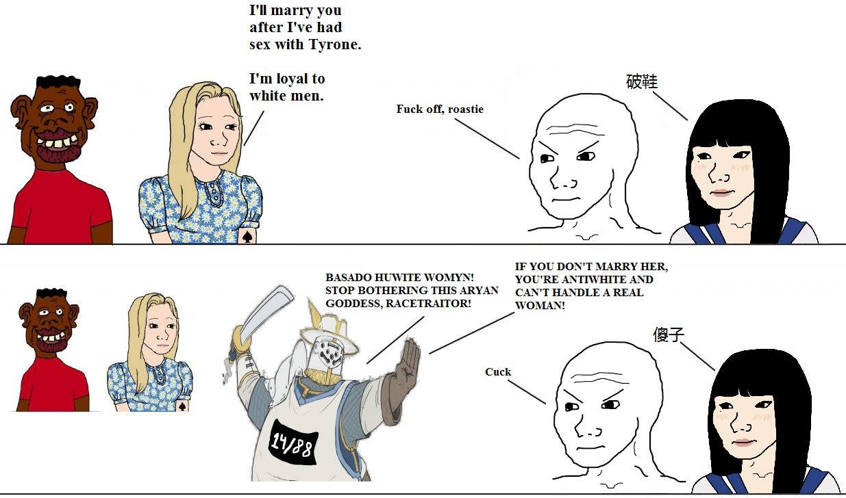 >>525867339>>525865673>even doubled downThis is what sets good, non-westernized asian women apart from every other type of woman on the planet. They actually have a sense of duty to the relationship once it existsAs a white man, you need to ensure these loyal white-coded genes get passed on. Current (((white women)))'s pathological and constant disobedience to and dislike of white men is dragging the white race as a whole down, so we need to replace current white women with bleached hapa offspring women, who will then become the new white women