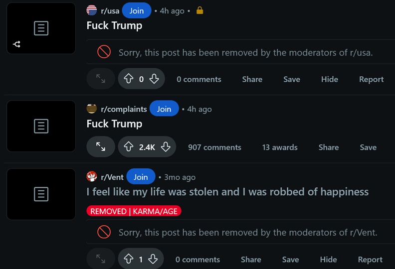 Reddit is made up of the unhinged, I just scrolled multiple pages and it’s a bunch of shit like this. Seriously basically every post is just the same post rephrased.