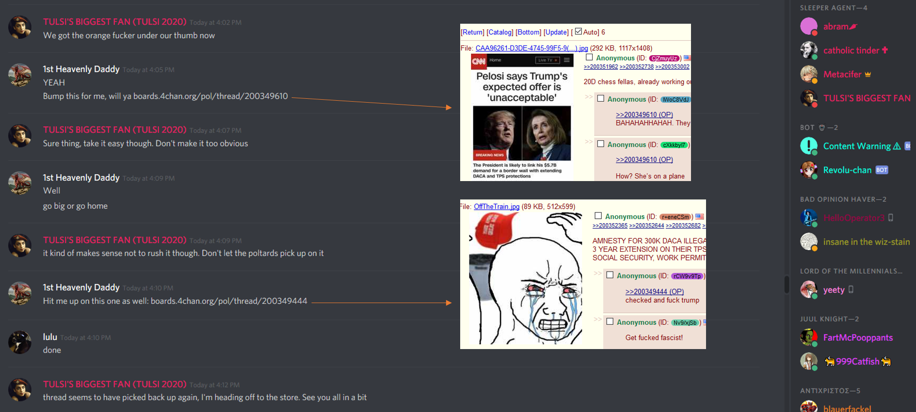 >>525870974These are all feds.If you were so angry at Trump you would attack him. It wouldn't actually be that hard to assassinate Trump or any of the top guys in his administration. But look what they are advocating, they want you to kill random Trump supporters.They want leftists to go violent and kill some random people who then can be used as martyrs to push the new zionist policies and crack down on anyone who is anti MIGA.Not one of those people is talking about killing people who are in power. This is Kash Patel on 5 alts trying to get redditors to kill Trump supporters.