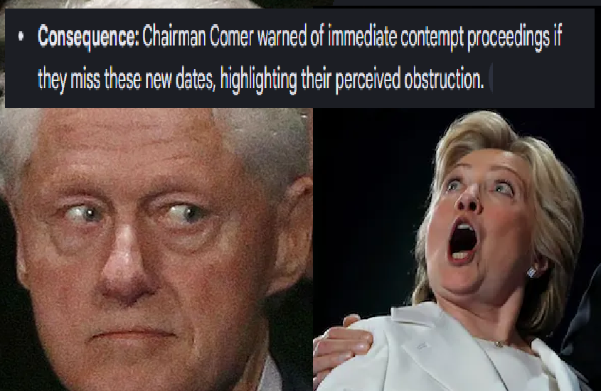 HILLDAWG AND BILLY HAVE DEPOSITIONS OVER EPSTEIN IN FRONT OF THE HOUSETHE ONLY THING ISTHEY AREN'T SHOWING UPHILLARY AND BILL CLINTON ARE ON THE RUNTHEY HAVE TO SHOW UP OR THEY'RE GETTING ARRESTEDTHEY'RE SCAREDAAAAAAAAAAAAAAAAAAAAAAAAAAAAAAAAAAAhttps://mace.house.gov/media/press-releases/congresswoman-nancy-mace-issues-statement-bill-and-hillary-clinton-depositions