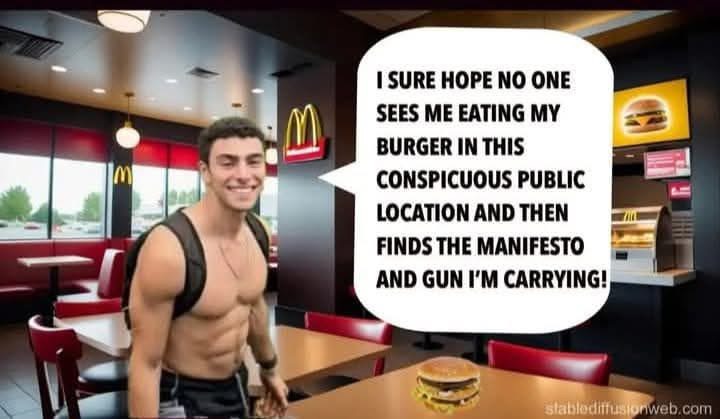 >>525905125if i was a septuagenarian working a MACdonalds in bumfuck america and i saw this pic then saw luigi walk into my hamburger store? i'd call the fbi too. spitting image.