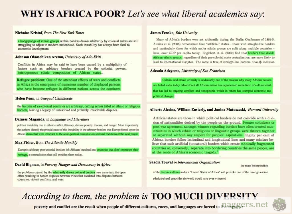 >>525910009What, you think Africa is poor because of race, what are you retarded?Africa has the most racial diversity in the world. Fucking Pigmies and 6ft tall Nilotics live right next to each other.There isn't even one African race.