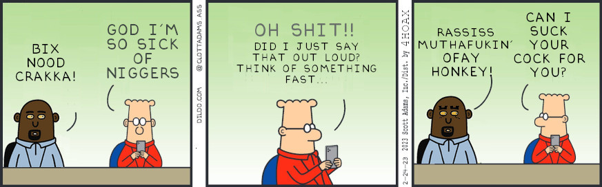 >>525917039Wasn't a fan of Dilbert, but read his book years ago. I thought it was fairly useful, and I give him credit for speaking the truth (blacks vs whites). He was canceled because what he said is the absolute truth. Most ppl wouldn't have the balls to say it. Guess he had Fuck you money.Can't help but wonder if the vaxx gave him turbo cancer. And also if did wake up in Heaven, since he proclaimed Jesus Christ as his Lord and Savior at the end, but stated it was cause of the risk/reward profile, not cause he was a believer. Does that count?RIP in peace, Scott. Enjoyed hearing your take on things.
