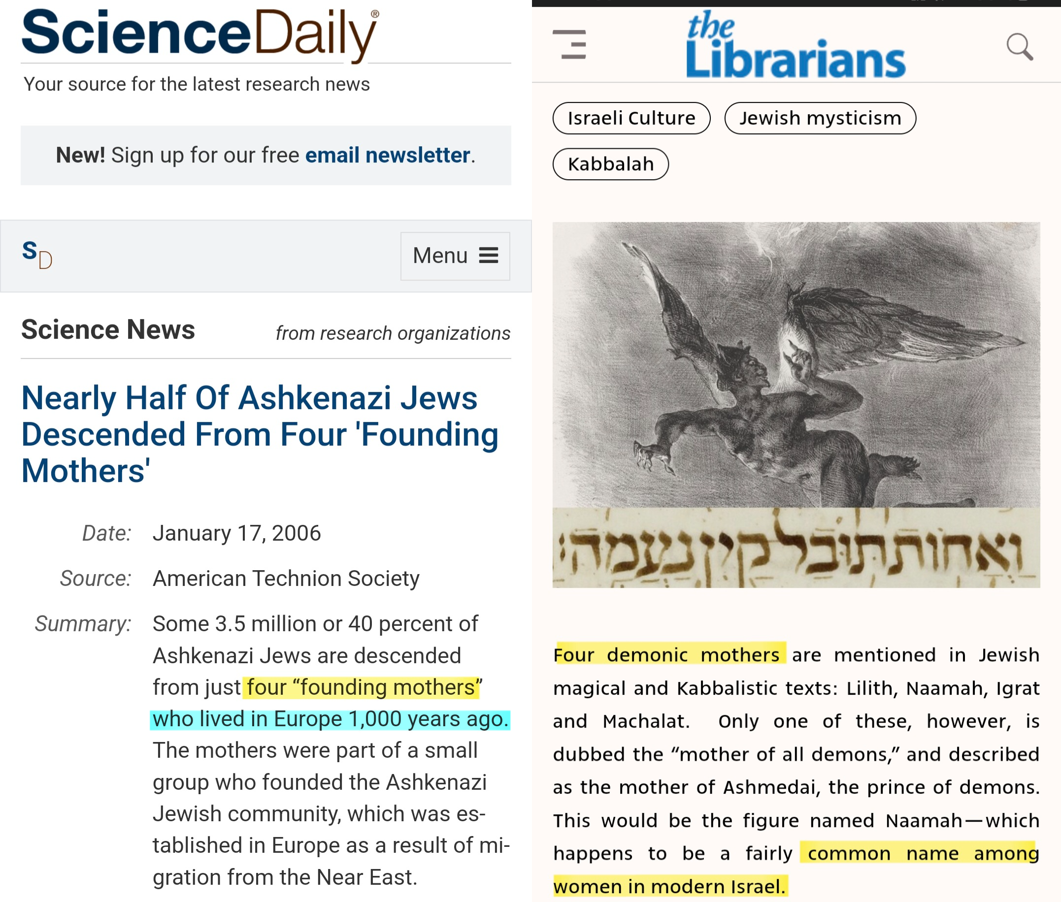 >>525917048"recent DNA analysis of Ashkenazic Jews – a Jewish ethnic group – revealed that their maternal line is European. It has also been found that their DNA only has 3% ancient ancestry which links them with the Eastern Mediterranean (also known as the Middle East) – namely Israel, Lebanon, parts of Syria, and western Jordan. This is the part of the world Jewish people are said to have originally come from – according to the Old Testament. But 3% is a minuscule amount" - ["Ashkenazic Jews’ mysterious origins unravelled by scientists thanks to ancientDNA"](https://theconversation.com/ashkenazic-jews-mysterious-origins-unravelled-by-scientists-thanks-to-ancient-dna-97962)