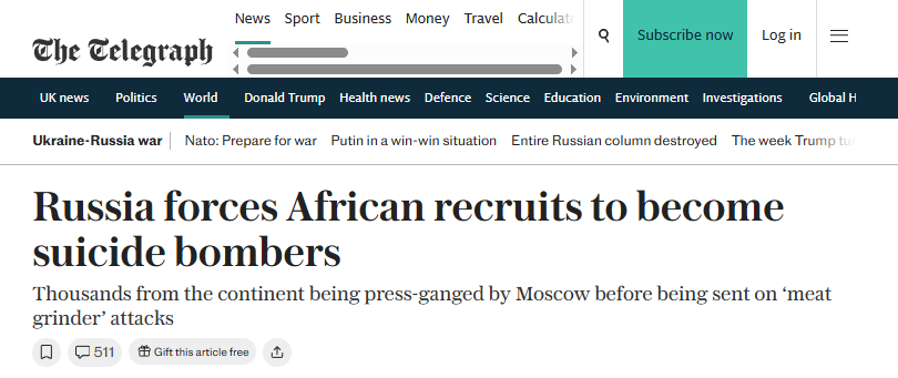 >RUSSIA IS SENDING AFRICANS AS FORCED SUICIDE BOMBERS