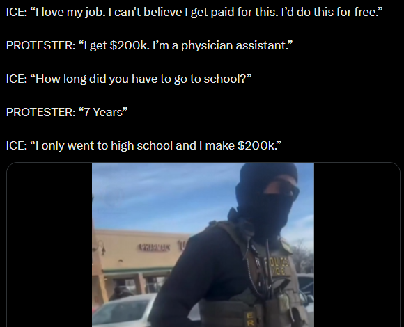What happens when Dems retake power and start coming after everyone who joined ICE 2025-2028? They'll know that anyone who joined during that time is le eebil Nohtsee. They can't prosecute all, but they can come at you in other ways and fuck you over. I would do it anyway if I was qualified because my life is shit regardless. I won't get hired. But I applaud anyone willing to do it. Just keep in mind that Dems may go on a revenge tour ala post-Jan. 6.