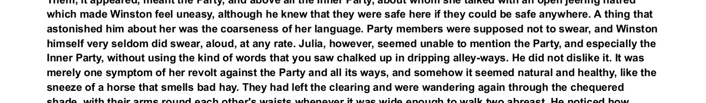 >>525927582saying "nigger, kike, troon, faggot" IS woke though. "A thing that astonished him about her was the coarseness of her language. Party members were supposed not to swear, and Winston himself very seldom did swear, aloud, at any rate. Julia, however, seemed unable to mention the Party, and especially the Inner Party, without using the kind of words that you saw chalked up in dripping alley-ways. He did not dislike it. It was merely one symptom of her revolt against the Party and all its ways, and somehow it seemed natural and healthy, like the sneeze of a horse that smells bad hay."except from 1984, page 46