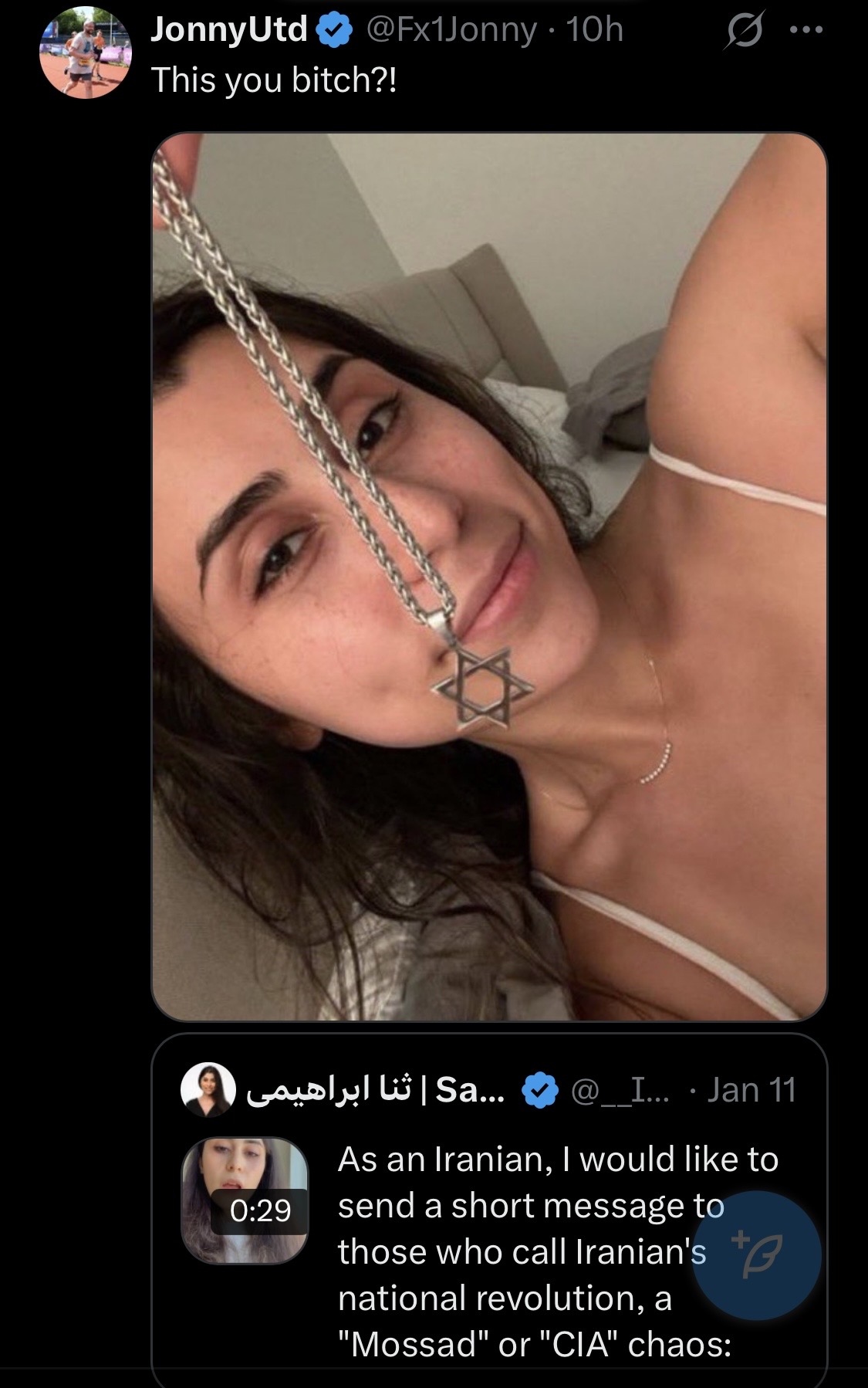 >>525934135there was no increase in national unity after the strikes in 2025 that is a complete fucking joke otherwise they wouldnt be where they are todaypeople fucking hate their government over there, a lot of them were cheering on social media when israel and america were bombing the fuck out of their nuclear sites and the regime didnt even follow through on threats to arrest the people gloating because they knew it could backfire