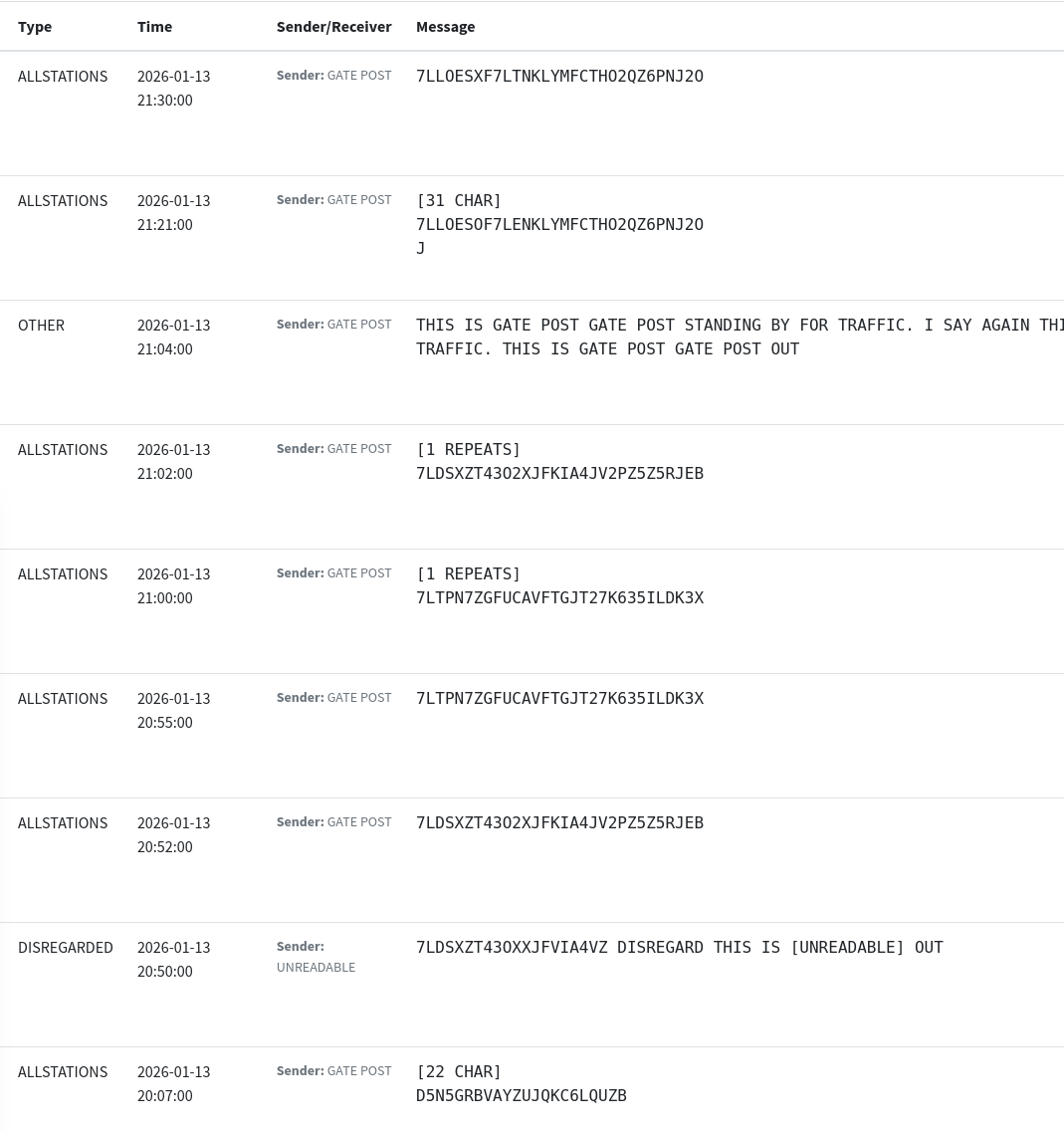 >>525931768>>current transmissions come from callsign: gatepost, a girl with an insanely hot voice and doing a lot of transmissions currentlyOh I see, some EAMs recently, gonna fire up the radio thanks anon