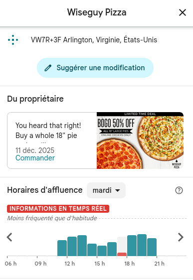 kek, the DoD finally convinced Google to close this OPSEC, all pizza joints reporting 0% trafficl except the one which is furthest from the Pentagon, and that one is at 200% busyness.