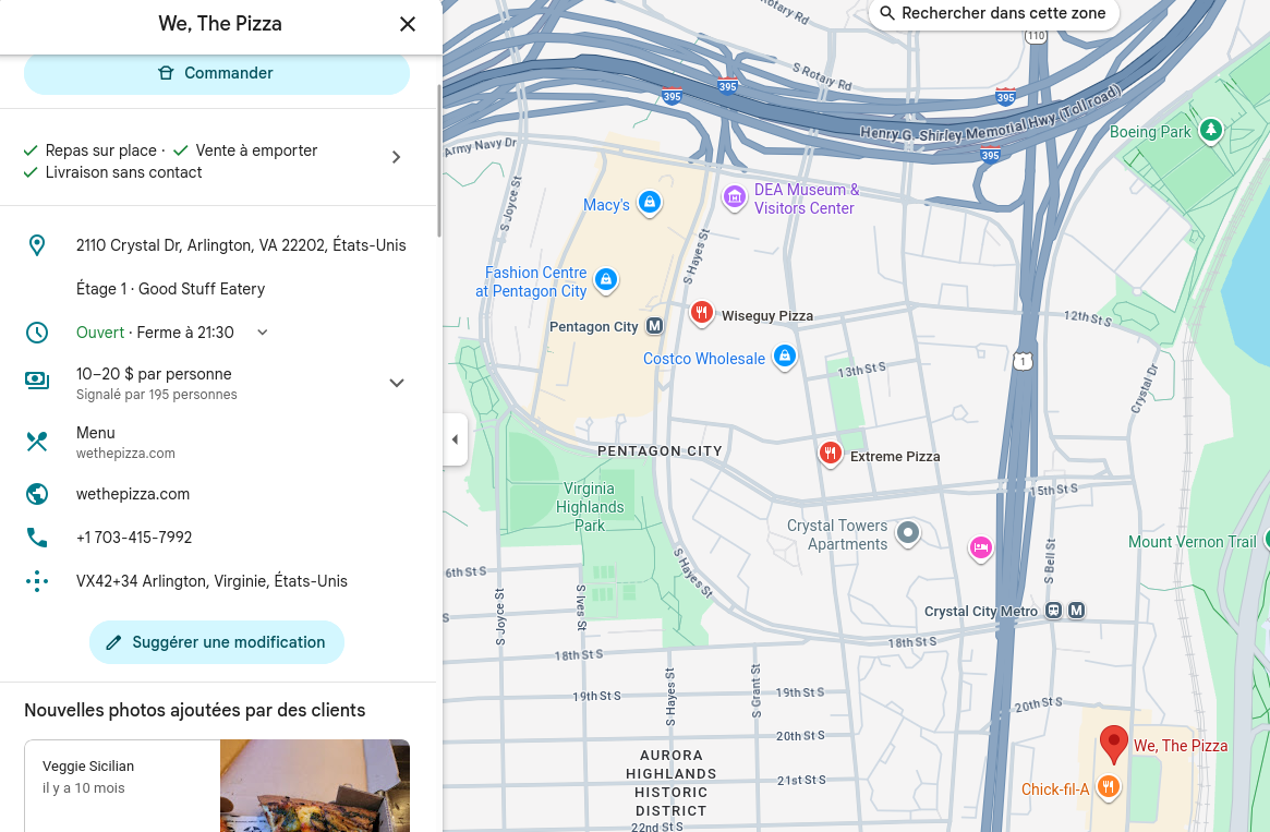 How is the pizza joint near the pentagon ?