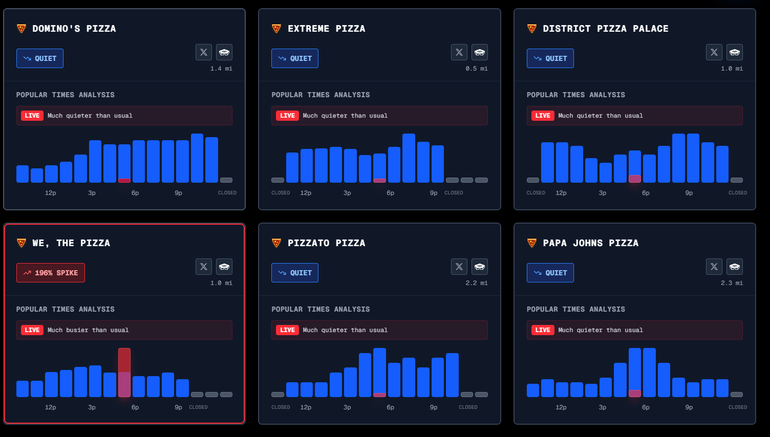 >>525934497The gaybar closest to the pentagon is also desolated, however, we, the pizza close to the pentagon has a spike of 200%