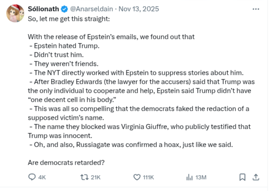 In other news, the left continues to ignore irrefutable proof that Plaskett was collaborating with Epstein during a congressional hearing, and relied on him as a major donor.