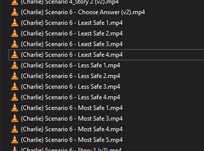 >>525937657https://gofile.io/d/gKCdEXThe only unused ones are the Scenario 6 and Post Scenario ones.I think "Least Safe" and "Less Safe" aren't used.The game defaults to "Most Safe".