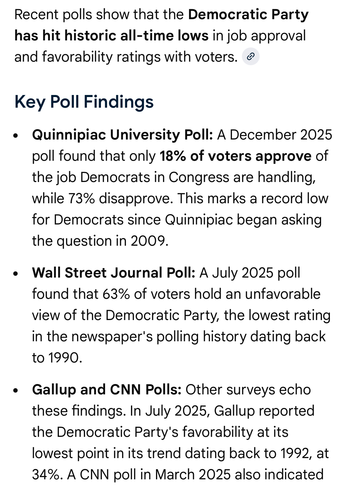 >democrats up 3% in the generic ballot>8% in the whatever this thing is>but only 20% of people see democrats favorably, compared to 30% seeing republicans favorablyI guess when it comes down to the polls you just have to campaign and see how things shake out, because the current stats are extremely unclear as to what would produce such a thing.