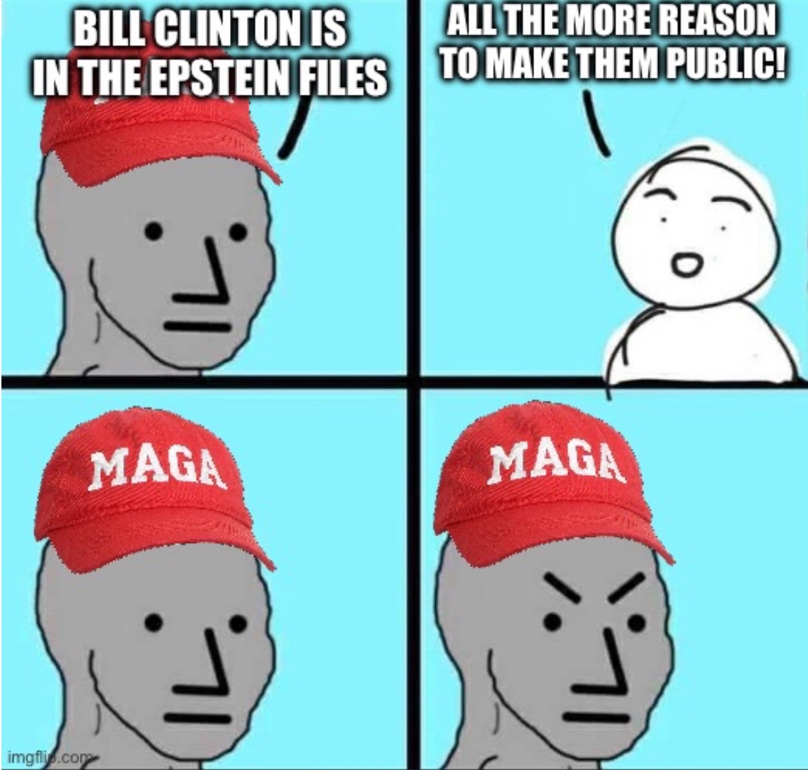 Clinton has been advocating for the Epstein Files to be released in full you gullible fucking retard. The only person stopping that full release is Trump. Who is he protecting?