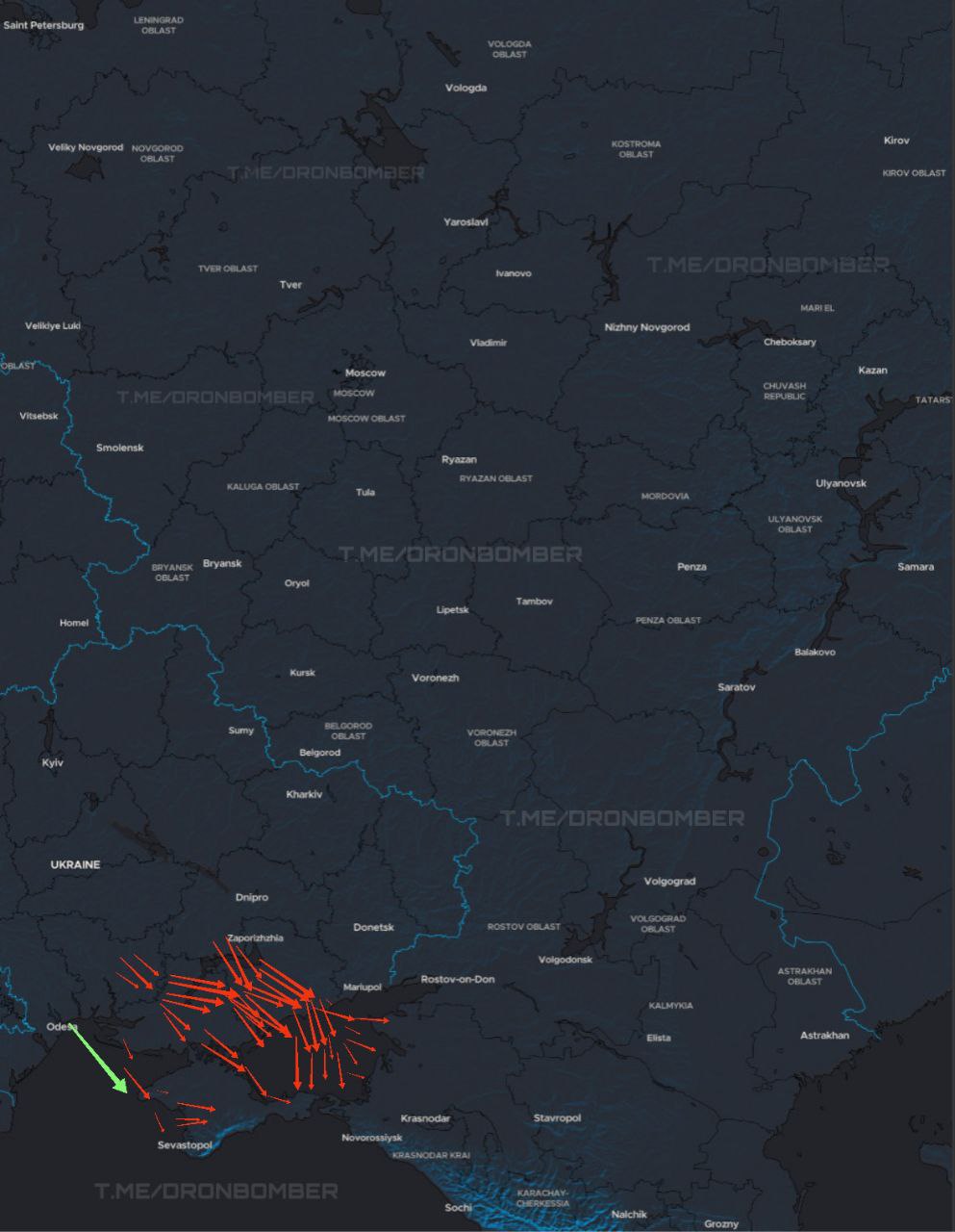 12:25 | 14/01Approximate flight routes of our UAVs:Red arrow - directions of movement of strike UAVs;Green arrow - directions of movement of cruise missiles.According to Russian sources, about 60 drones and 2 missiles were reported, but these estimates, along with the routes, are extremely indicative.