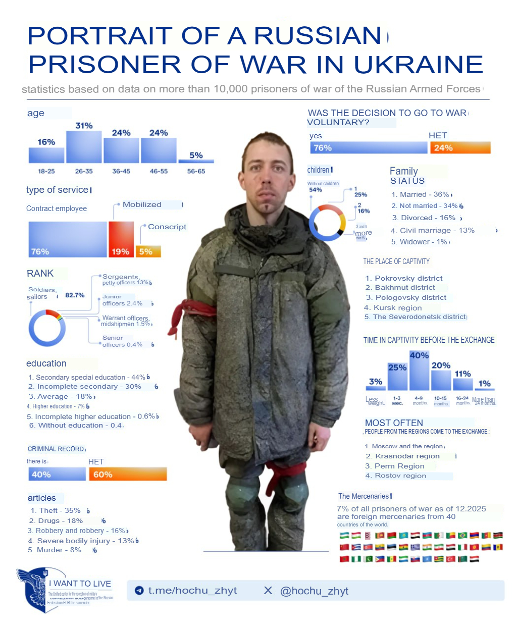 Portrait of a Russian Prisoner of War in Ukraine:>76% say they volunteered to go fight>40% admit they have had a prior criminal record>7% are not russian citizens