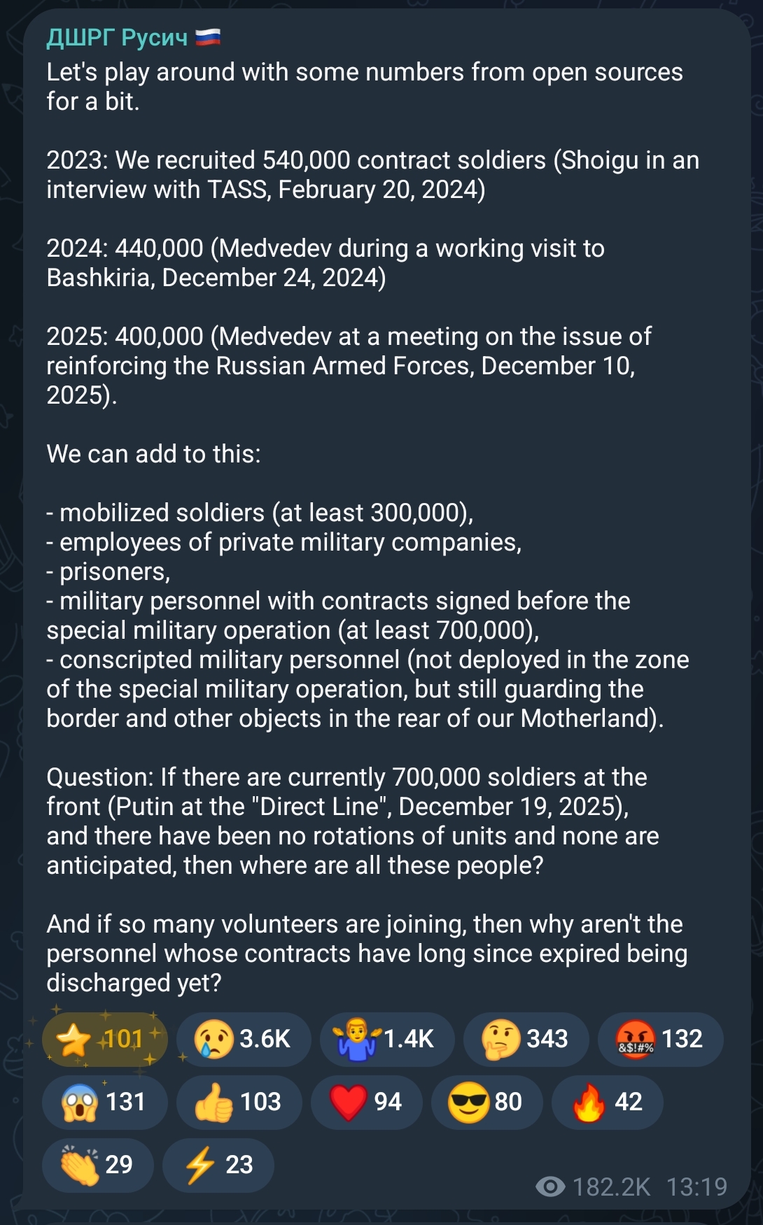 >>525981167Get fucked faggotNo real sourcesThat was an intial vauge law then they changed and clarified it because people were freaking out. No conscripts have even been sent to ukraine (except in the initial first few months wich was a clusterfuck).NOBODY has had thier one year conscription forcibly extended.So if the conscripts arent in ukraine how are they dying?