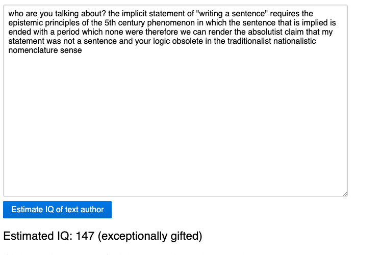 who are you talking about? the implicit statement of "writing a sentence" requires the epistemic principles of the 5th century phenomenon in which the sentence that is implied is ended with a period which none were therefore we can render the absolutist claim that my statement was not a sentence and your logic obsolete in the traditionalist nationalistic nomenclature sense