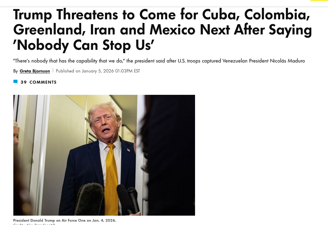 >>525988600I know trump is the "funny haha 4d chess say one thing to get you to the the opposite which is actually what he wants" man and no one really reacts anymoreand sure, maybe what he really wants is for nato to step up and defend greenlandbut aren't these effectively declarations of war?
