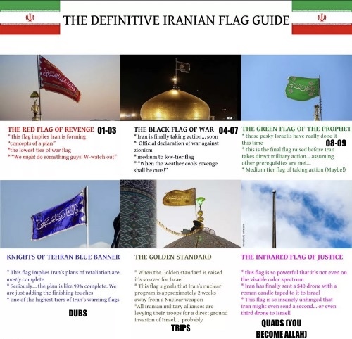 they have been raising these flags since that roadside mini-cannon-hidden-in-a-parked-car -- in Tehran mind you -- took out one of their preeminent Nuke scientists.
