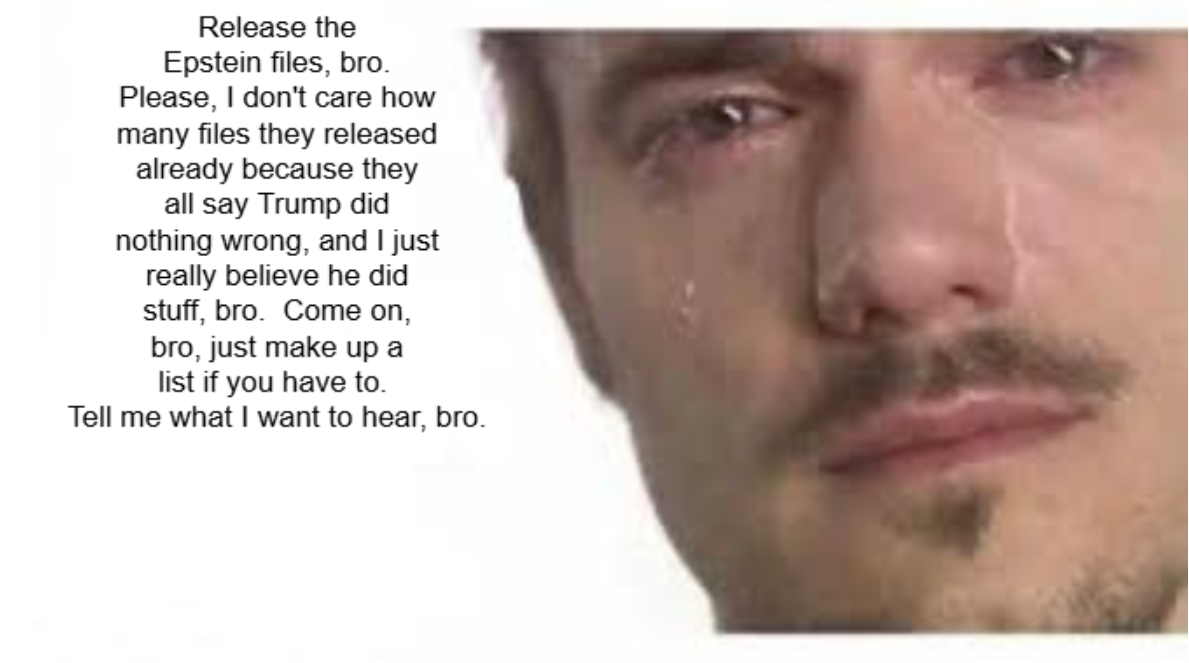 >>525996601>why won't the President release files controlled by the DOJhmm, now why would the DOJ not want files released where they made deals20 years ago and involved other cases? Didn't the bill say that it is only regarding the Epstein case? So how exactly can you release peoples names when that would also mean other case files then are revealed? In other words deals were made, they involved other cases. Names are then released, then a reason is given why they were not prosecuted and why deals were given, but the bill doesn't allow that as it is only for the Epstein case and the bill allows DOJ discretion in redacting. Admit it, you were fooled by the likes of Massie and the Dems who wrote the bill, those people had zero interest in the Epstein case before 2025 and Trump being sworn in. It's simply a political tool they use against the current admin, MAGA did the same when Biden was in power. The tell of course is that the Dems only interest now is any link between Trump and Epstein they can find. They can't find anything tho.