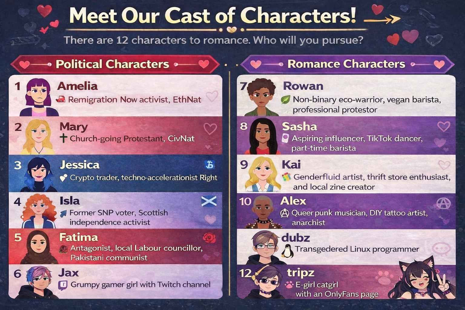 >>526012909>What did I miss bros? QRD?Brit government made a dystopian kids game about immigration and other pozzed shit where if you made the wrong choices in the game it reported you to the government for wrong think.Only by making the wrong choices you happen to get a cutie goth gf called Amelia.Brit nationalists then took her as their queen.