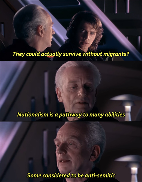 >>526022314Because nationalism is not a political movement.It doesn't provide any country governing solutions.Their entire movement ideology is "remove something I don't like".Once they're done removing it, they don't know where to go from there.So they just keep removing everything even remotely threatening as cureall.Which just ends up being a tyrannical medieval governing order.