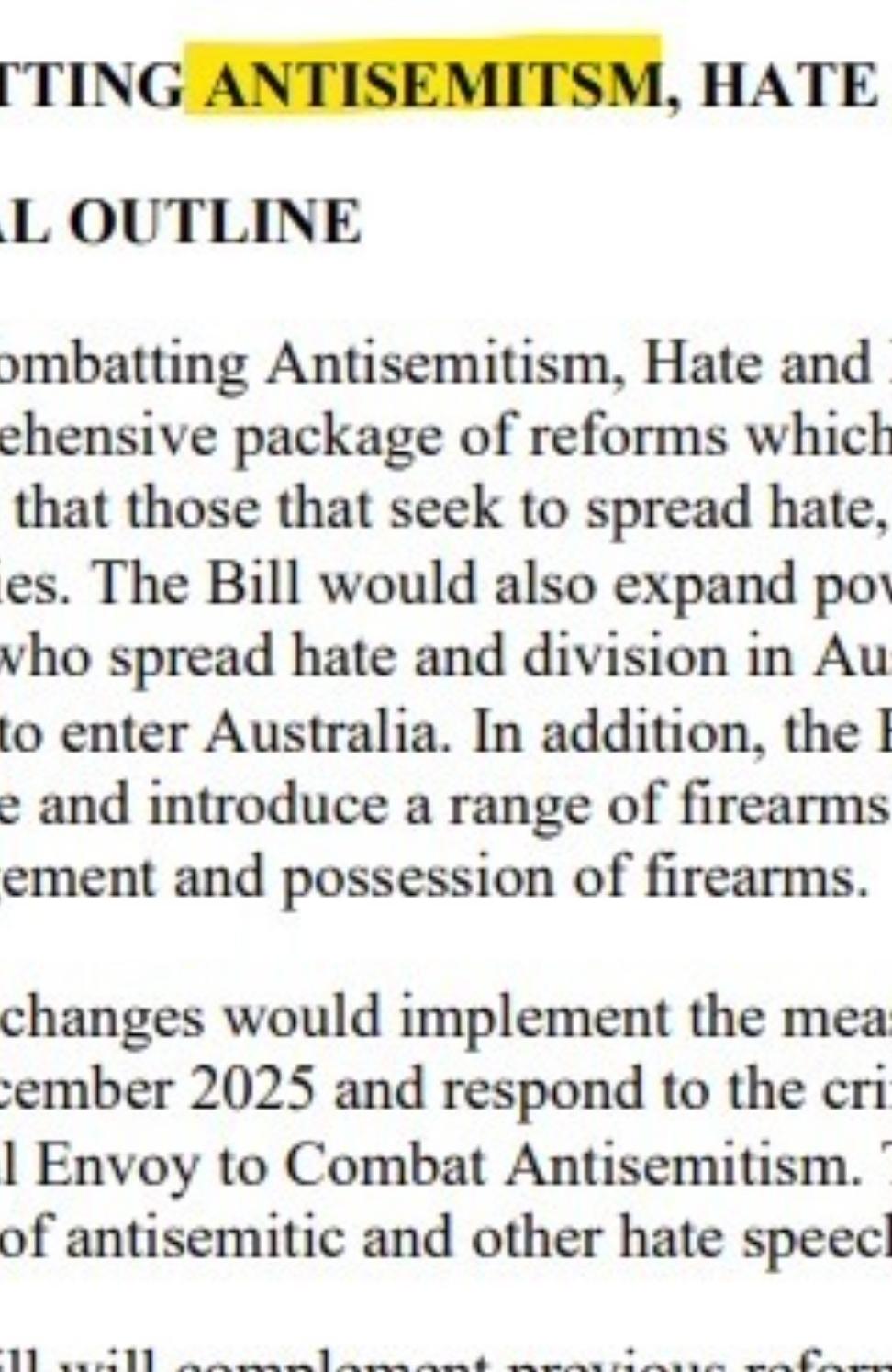 >Anthony Albanese has declared he is “stunned” by the Coalition backing away from supporting a crackdown on hate speech in a move that will likely force Labor into a deal with the Greens.>The Albanese Government now faces the very real risk of being forced to do a deal with the Greens in the Senate to pass the laws or face delays, despite bringing parliament back early to rush through the legislation.>But an embarrassing typo on the first page of the draft laws underscores the rush to finalise the legislation.>The Albanese Government’s new draft laws misspell the word anti-Semitism on the first page of the proposed legislation, omitting an ‘i’.https://www.news.com.au/national/politics/awkward-typo-in-albanese-governments-hate-speech-legislation/news-story/f743facaa71355bcd65ac199eb271050