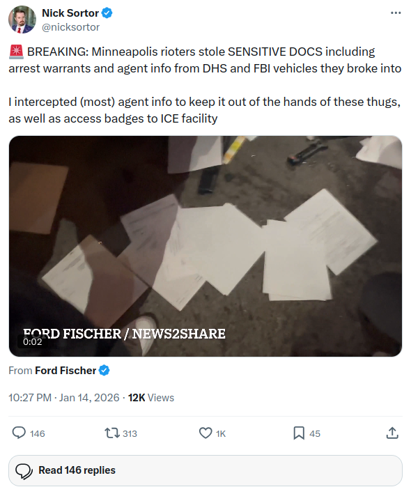 Well after the roaches realized they filmed themselves commiting literally dozens of federal crimes and scattered, Nick Sortor went through and picked up all the documents to hand over to the FBIhttps://x.com/nicksortor/status/2011686570336858486>>526053673It just keeps getting worse.